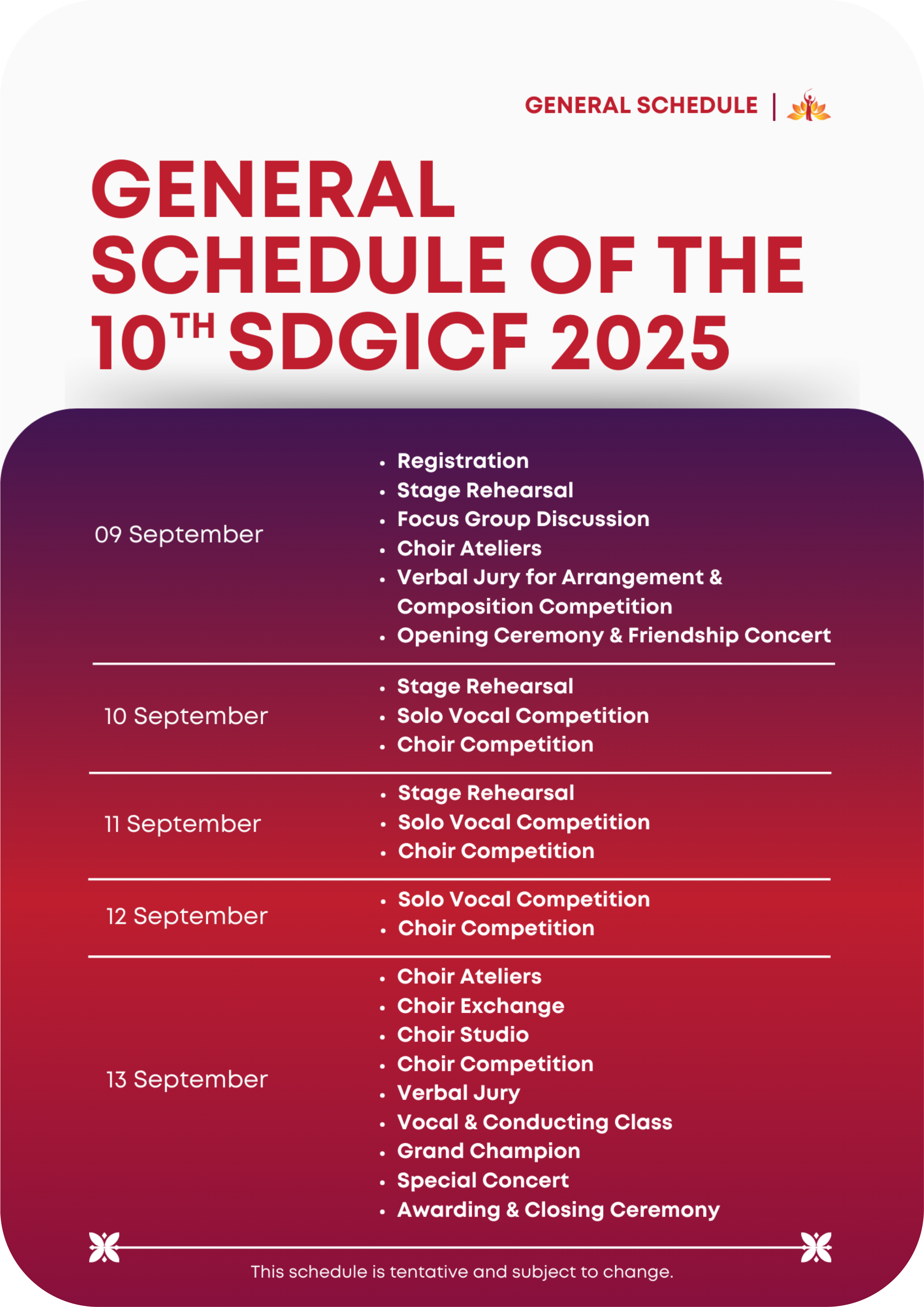 GENERAL SCHEDULE & timeline ACTIVITIES